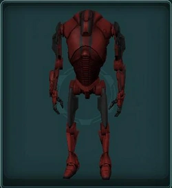 One of several models of aggressive droids in The Shadowed Lands of Kashyyyks Rryatt Trail left behind from the Second Battle of Kashyyyk during the Clone Wars. Though nearly 25 years have passed, these droids are operational and quite lethal. These droids are also to be found in The Warren and the Imperial Detainment Center on Dantooine, The Corellia Droid Factory on Corellia, various Old Republic facilities on Mustafar, in Borvo the Hutt's Vault and the Ultragungan Bunker on Naboo, onboard Corellian Corvettes, random spawns in Theed, Station Gamma, and known crash sites on Tatooine and Lok. As of Game Update 12 they have become craftable.