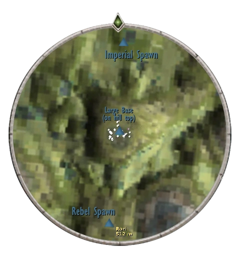 Bunker Assault is a battlefield located on Endor. This battlefield involves one central bunker on a steep plateau. The base can be controlled by either side and swapped between them at will. No smaller bunkers or side objectives, this is probably the most straightforward king of the hill style map added. The reward is only 100 GCW per flip.