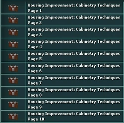 Cabinetry Techniques is a Housing Improvement collection. It is one of five Tier 2: Housing Improvement Collection Mark I that grants additional housing storage increase by 100 items.