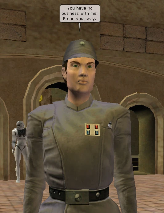 This NPC is an Imperial Pilot Coordinator.You must talk to a coordinator in order to resign from your current squadron. Coordinators are available throughout the galaxy.