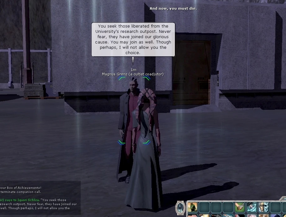 Magnus Grenz: You seek those liberated from the University's research outpost. Never fear, they have joined our glorious cause. You may join as well. Though perhaps, I will not allow you the choice.
