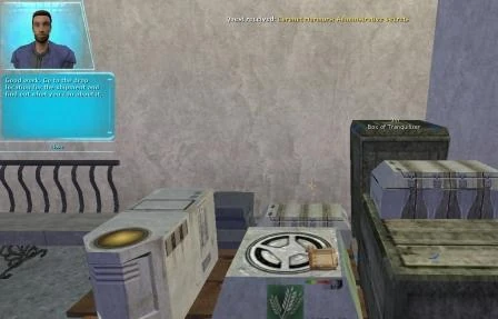 The shipment is in an out of the way alley in Coronet (-32 -4421), and consists of Animal Feed, Tranquilizers, Chemicals, and a Shipping Manifest. Hmmmm. Once you search them all, the journal updates and the mission is complete.