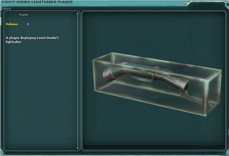 It is a plaque displaying Count Dooku's Lightsaber, that can be used as a decoration item in your house.