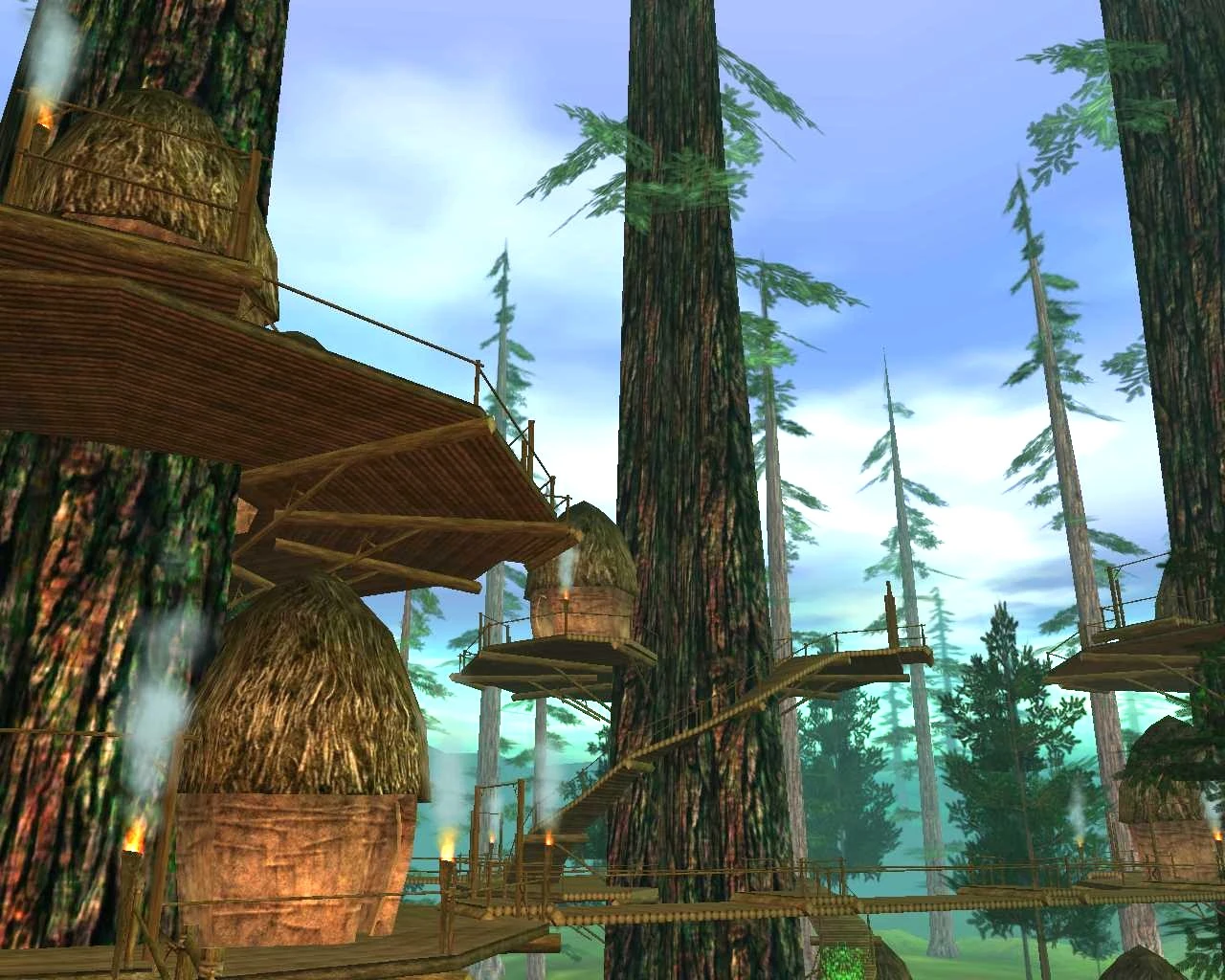 One of the forest villages of the native Ewoks. Do not let their cuddly appearance fool you, these beings are noble and strong warriors able to survive the rigors of Endor.