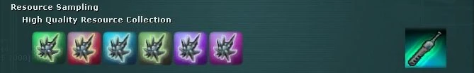 Simply survey for a resource that you desire, once completed either press sample on your survey tool or type /sample to begin sampling for the desired resource. The collection begins when you are eventually given a pop-up window with three selections. One selection (third from the top - requires 2000 Action) asks if you would like to obtain a high purity product of the resource you are gathering. First check if you have the Action points required and than choose this selection. This must be done 5 times in order to complete each resource field.