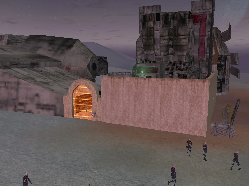 This is one of the hardest parts of the instance. Two giant battle droids with flamethrowers will come out of the main gate and stand next to each other in the middle of the dungeon. Whatever you do, DON'T stand still for this part. as soon as they aggro have one medic do a stasis on one of the battle droids and have your group focus on the other.