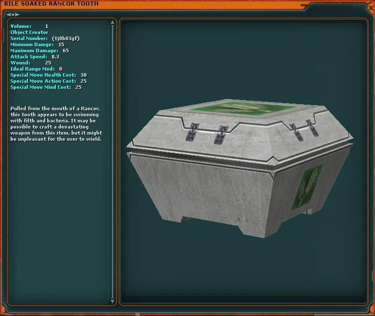 | This article relates to an element of Star Wars Galaxies prior to the New Game Enhancements. It is no longer accurate and remains for historical purposes only. |