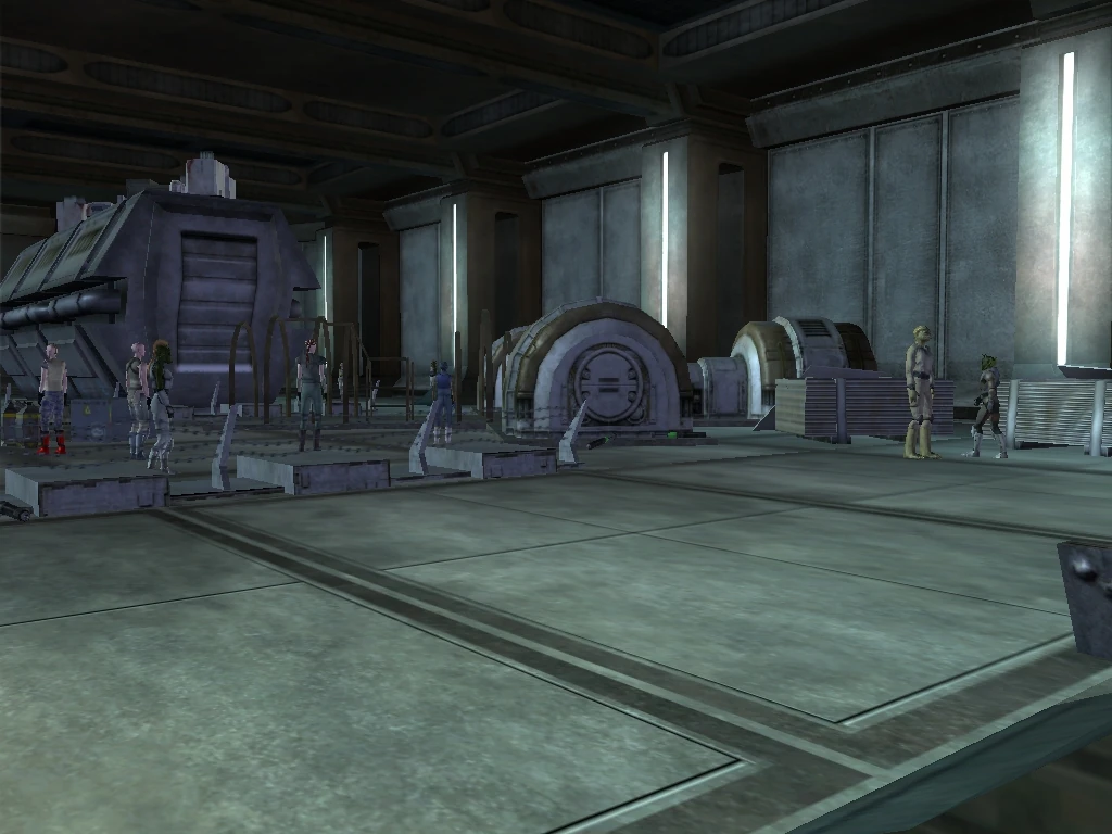 In the lower level of the station, one of the hangars has been overrun by Hutt minions. Kill the boss and weaken them.