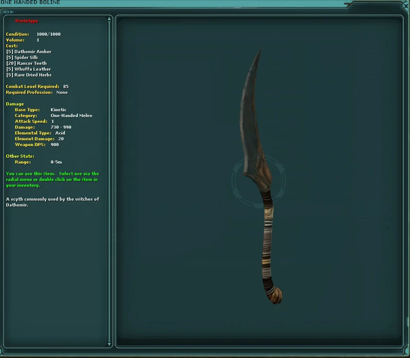 This one handed melee weapon can be bought at the Nightsister and Singing Mountain Clan Vendor for the following items: