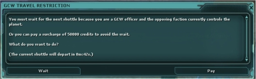 - GCW officers of the losing faction can only board every other shuttle, or pay a 50000 credits surcharge (each time) to avoid waiting for every other shuttle.