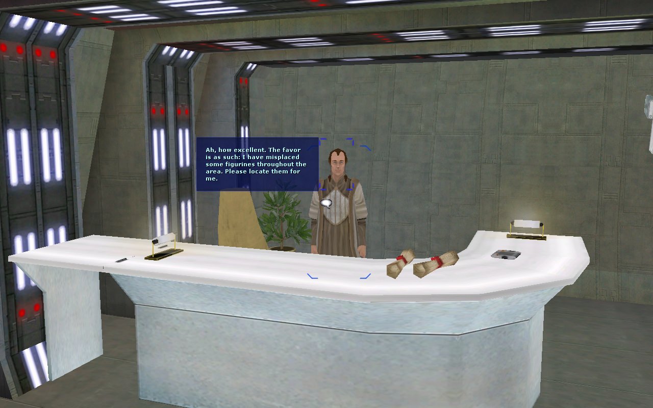 Rohak: Ah, how excellent. The favor is as such: I have misplaced some figurines throughout the area. Please locate them for me.