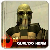 Qual'do Herm (/way -6513 6003) is your second contact for the Rebel Theme Park. He is located within the Hidden Rebel Base on Corellia.