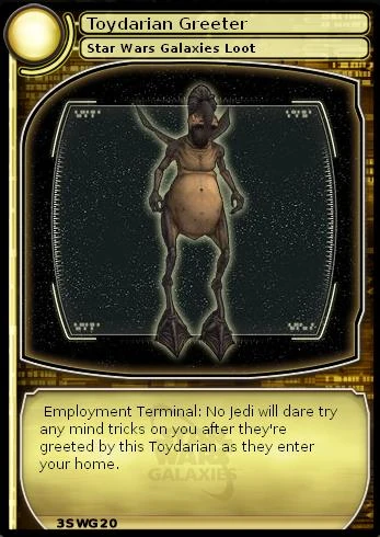 Description: Employment Terminal: No Jedi will dare try any mind tricks on you after they're greeted by this Toydarian as they enter your home.