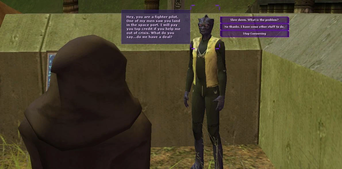 This completes the Trandoshan Slavers series of quests. However, there is another Trandoshan named Mssikss standing right next to you at this point, and it also has a mission for you, a Kashyyyk System space mission. So you may as well take it....