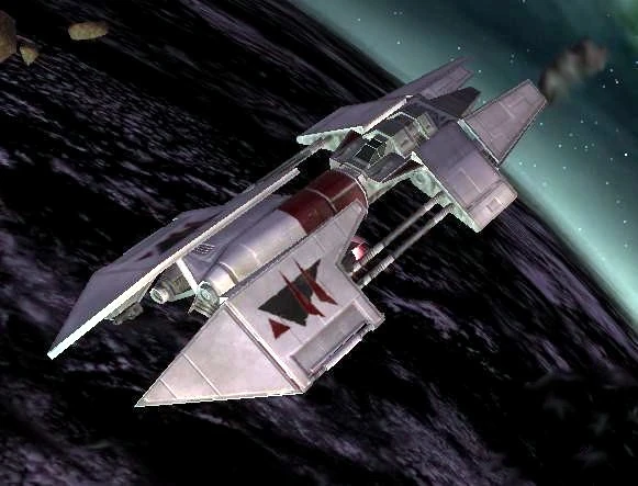 The Rihkxyrk Attack ship is a heavy assault fighter built by TransGalMeg Industries. Freelance Pilots with Exotic Vessels certification may pilot one of these independent bombers. With three weapons pods and an ordinance bay, the Rihkxyrk can bring devastating firepower to any space battle, though they are not as nimble as many smaller ships.