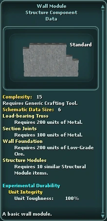 The Wall module is made by similar Structural Modules. This means that they are made by the same person, and don´t have to be made by a Structure Factory. Walls are required for a wide variety of Architect items, and can also be used creatively for decoration or improvised furniture.