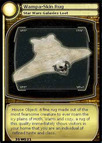 Description: House Object: A fine rug made out of the most fearsome creature to ever roam the icy plains of Hoth. Warm and cozy, a rug of this quality immediately shows visitors in your home that you are an individual of refined taste and class.